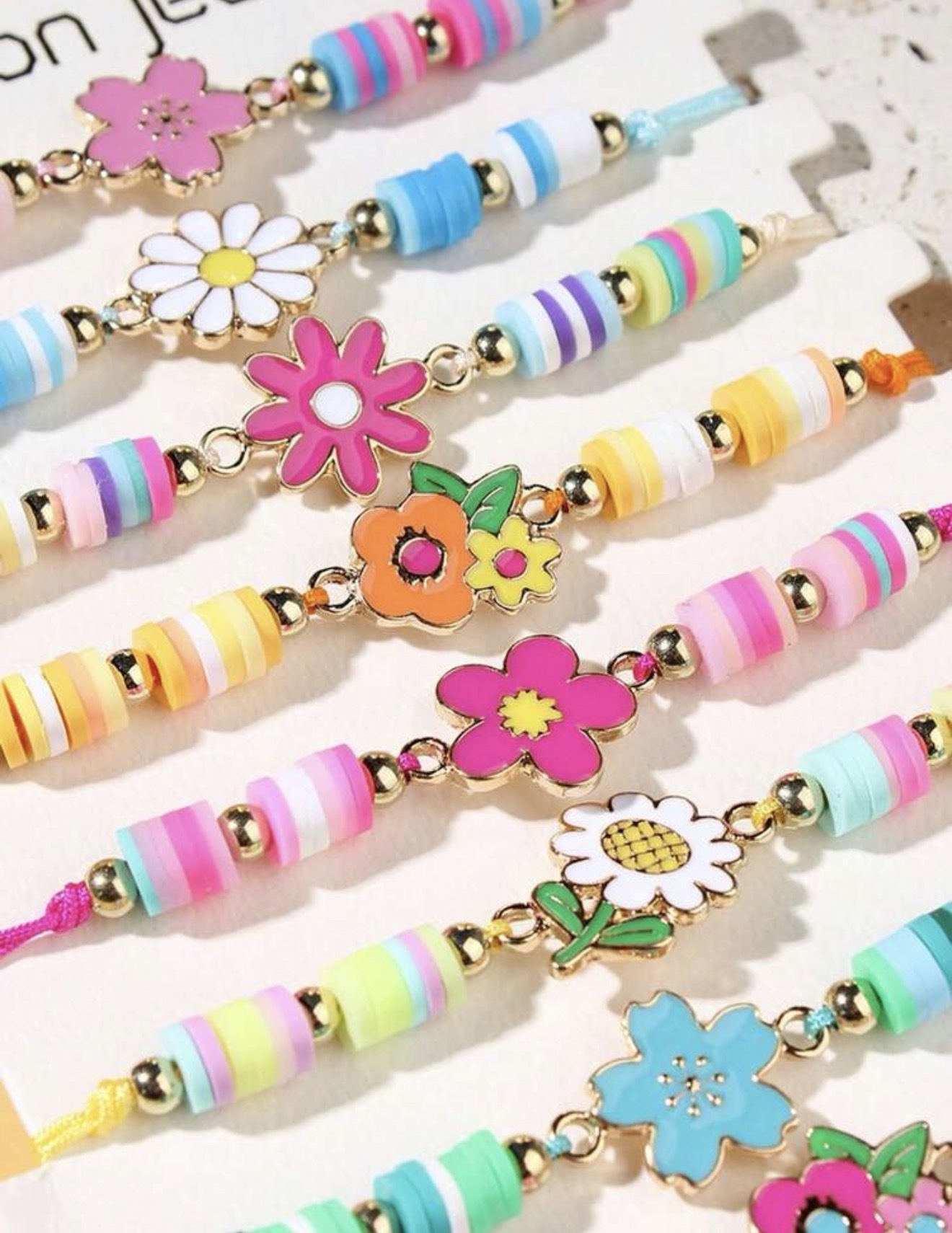 Des bracelets ultra mignons avec des petites fleurs et des perles colorées pour un look fresh & girly 🌈✨ Parfaits pour ajouter une touche fun à toutes tes tenues 💅🏽💖