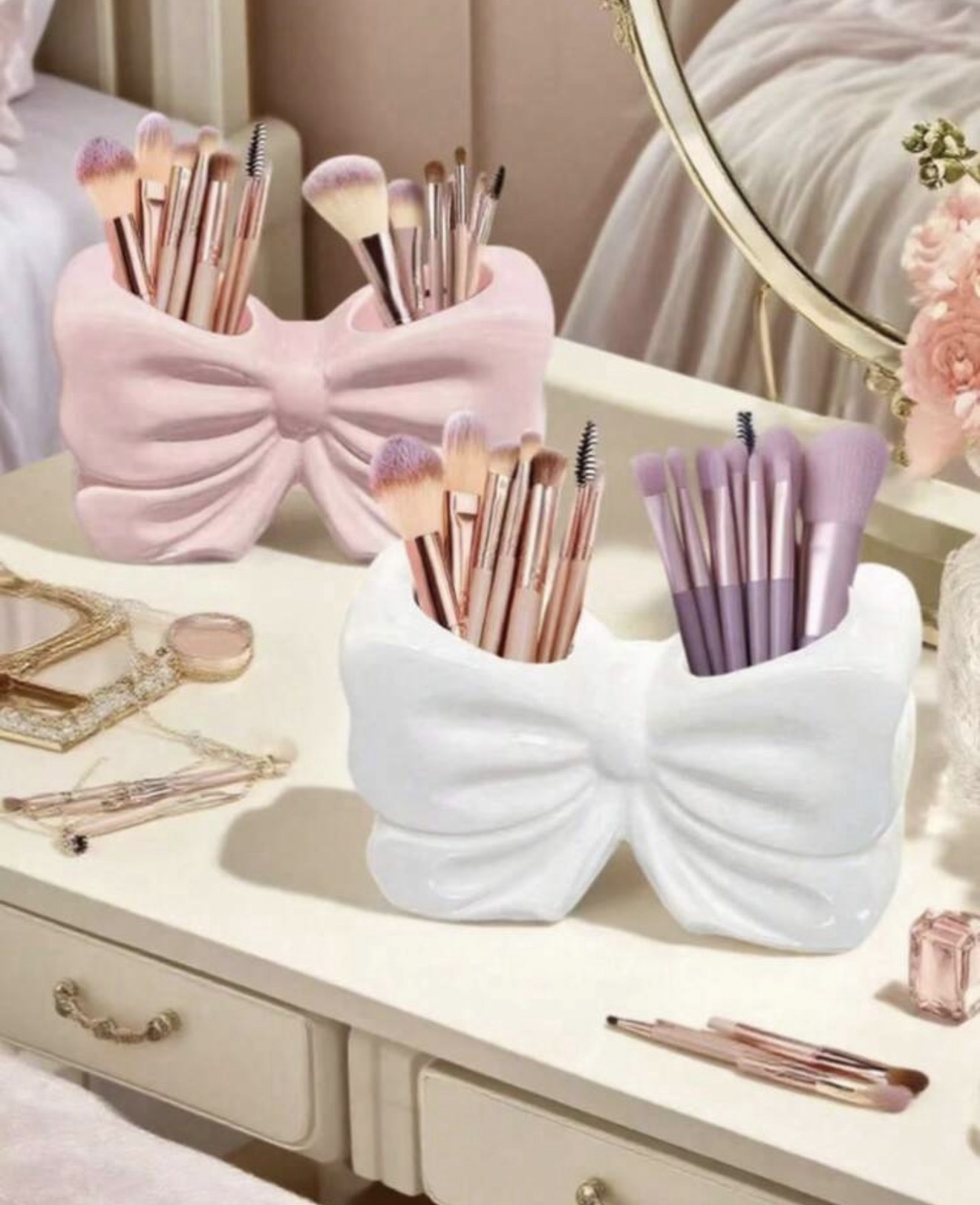 Un adorable rangement pour tes pinceaux makeup, parfait pour organiser ta coiffeuse avec une touche chic et girly đđ